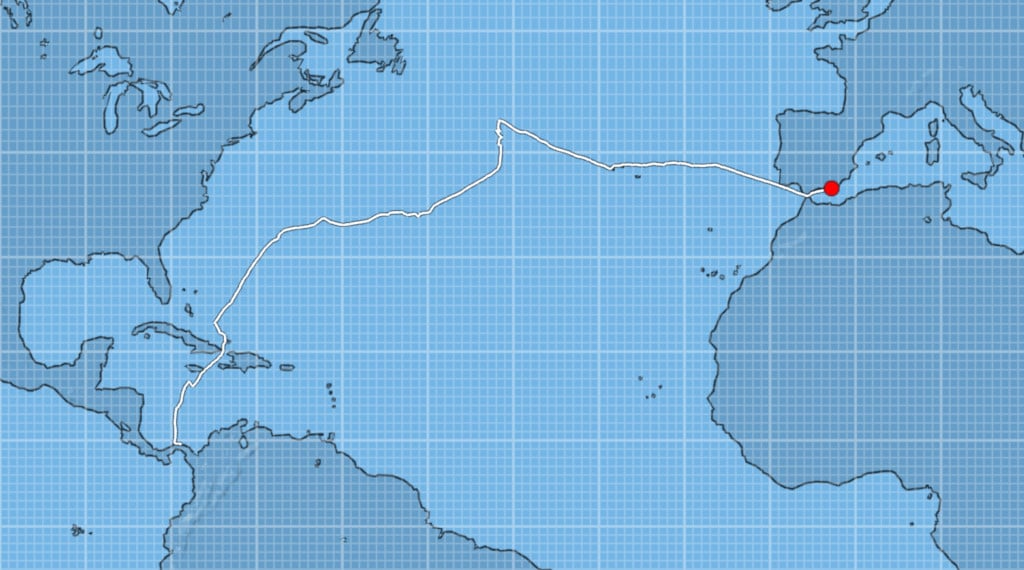 Alguien me comentó que lo más difícil era salir de la hoya del caribe, y en principio así tendría que haber sido, pero al llegar al atlántico norte nos encontramos el anticiclón más al norte de lo habitual que nos enviaba vientos de este a oeste por las latitudes de la 25 a la 35, lo que nos obligaba a subir hasta las latitudes 40 a 45 para encontrar vientos de oeste a este. Una locura que hacían imposible el cruce del atlántico de la forma tradicional, aprovechando los vientos oeste-este que se forman entre las latitudes 25 a 35.