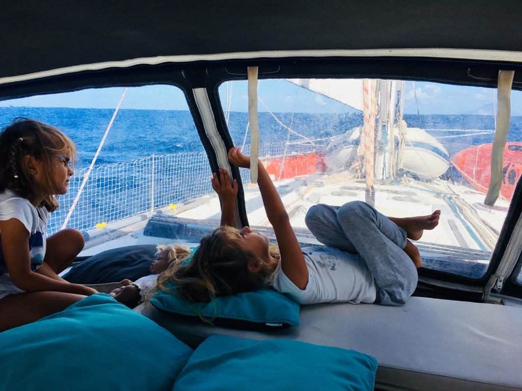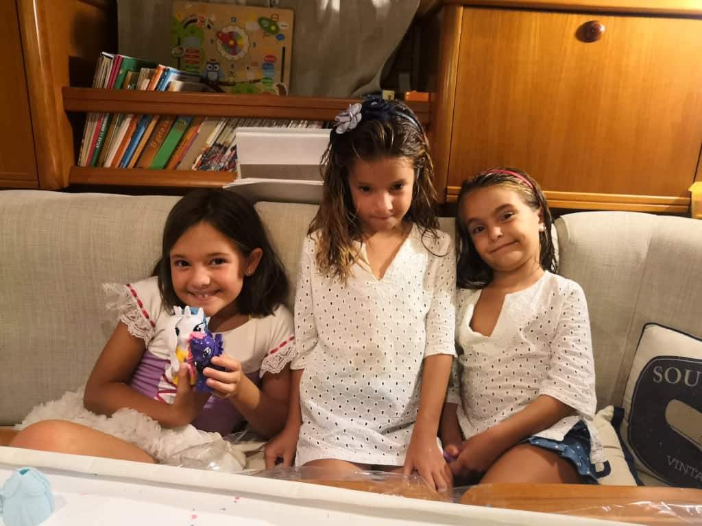Eva, la pequeña de la familia, hizo muy buenas migas con Sara y con Mia. De hecho la primera noche que cenamos con ellos, Sara y Mia se quedaron a dormir en su catamarán y tanto ellas como nosotros encantados de la vida. Dos noches después fue Eva la que se vino a dormir a nuestro velero.