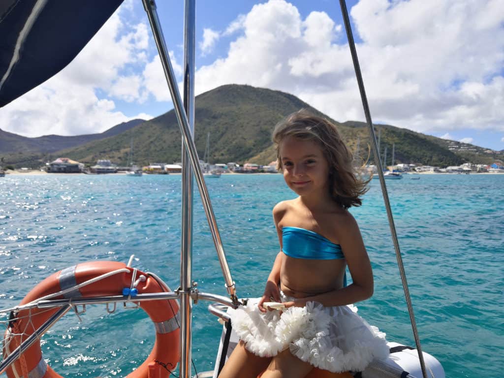 Las primeras dos noches las pasamos en la bahía de Grand Case, una bahía enorme al nordeste de la isla. Justo delante de un aeropuerto de avionetas que hay en la parte norte. El aeropuerto esta tan cerca de la zona de fondeo que hay una zona delimitada donde no se permite fondear para no entorpecer el aterrizaje de los aviones. Un fondeo tranquilo con una playa de arena blanca larguísima donde Mia lo paso en grande saltando del muelle principal. Con solo 4 años Mia saltaba sin problema al agua desde una altura de más de 3 metros y dejando con la boca abierta a los adultos que no se atrevían a saltar. Nos ha tocado una hija muy marinera y acuática que no le tiene miedo a prácticamente nada!