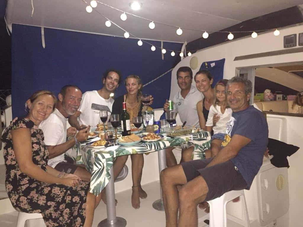 En St Martin también conocimos a Armando y Natalia del velero Luzula. Con ellos cenamos en nuestro barco junto a Javi y Pilar del Zingay y sus hijas.