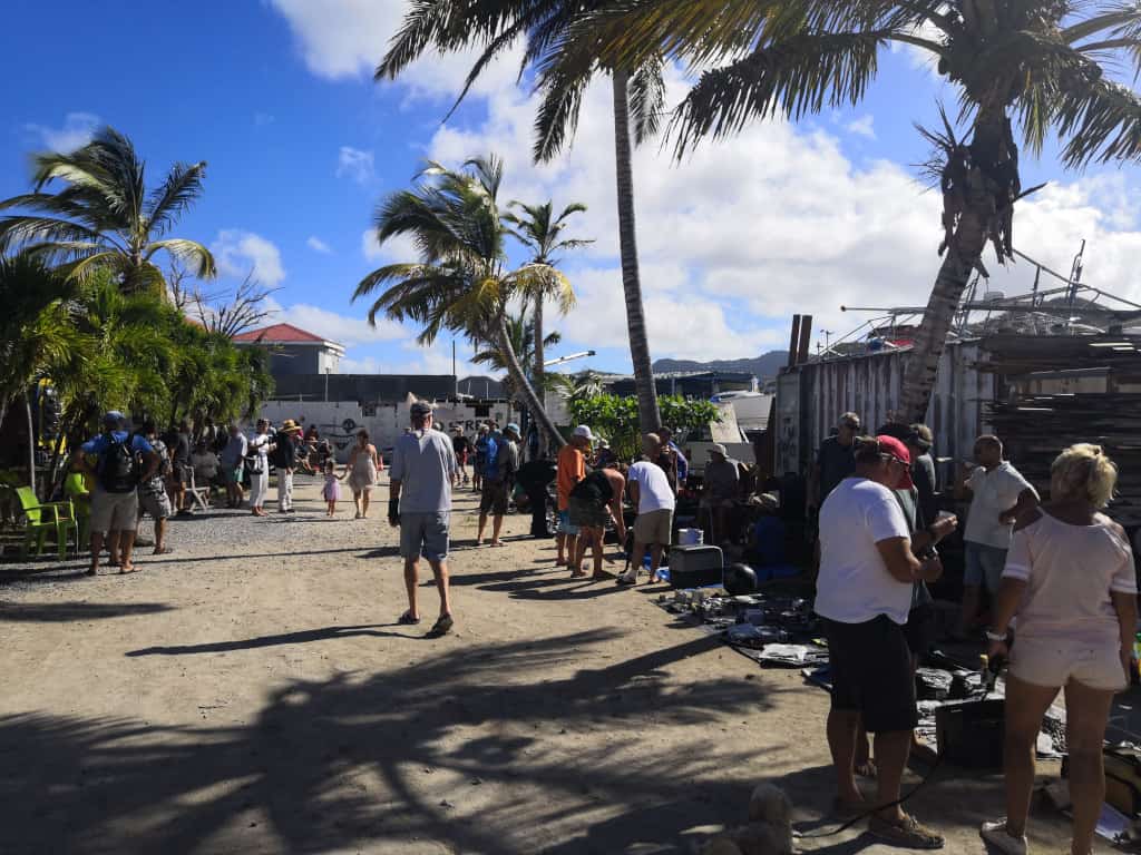 En St Martin se celebró durante esas fechas un mercadillo náutico donde la gente de los veleros del fondeo traen sus viejos aparatos o partes de su barco que no utilizan para intentar venderlas. Y allí que nos fuimos, Alejandro, Javi del Zingay, Jorge del Acheron y yo a ver qué encontrábamos.