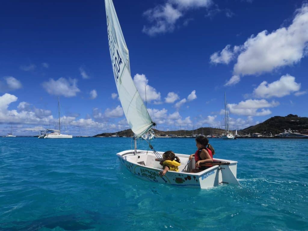 Zngay & Saramia kids.Viendo navegar a Anne con su Optimist.Mia navegando en el Optimist de Anne y Eva.