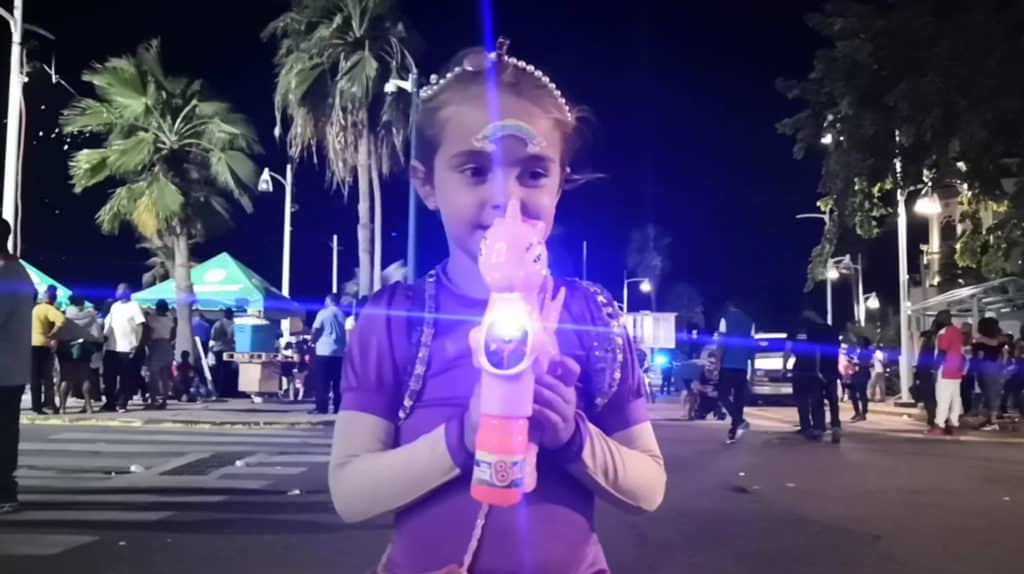 Sara "disfrutando" del carnaval de St Martin.Carnaval de St Martin.