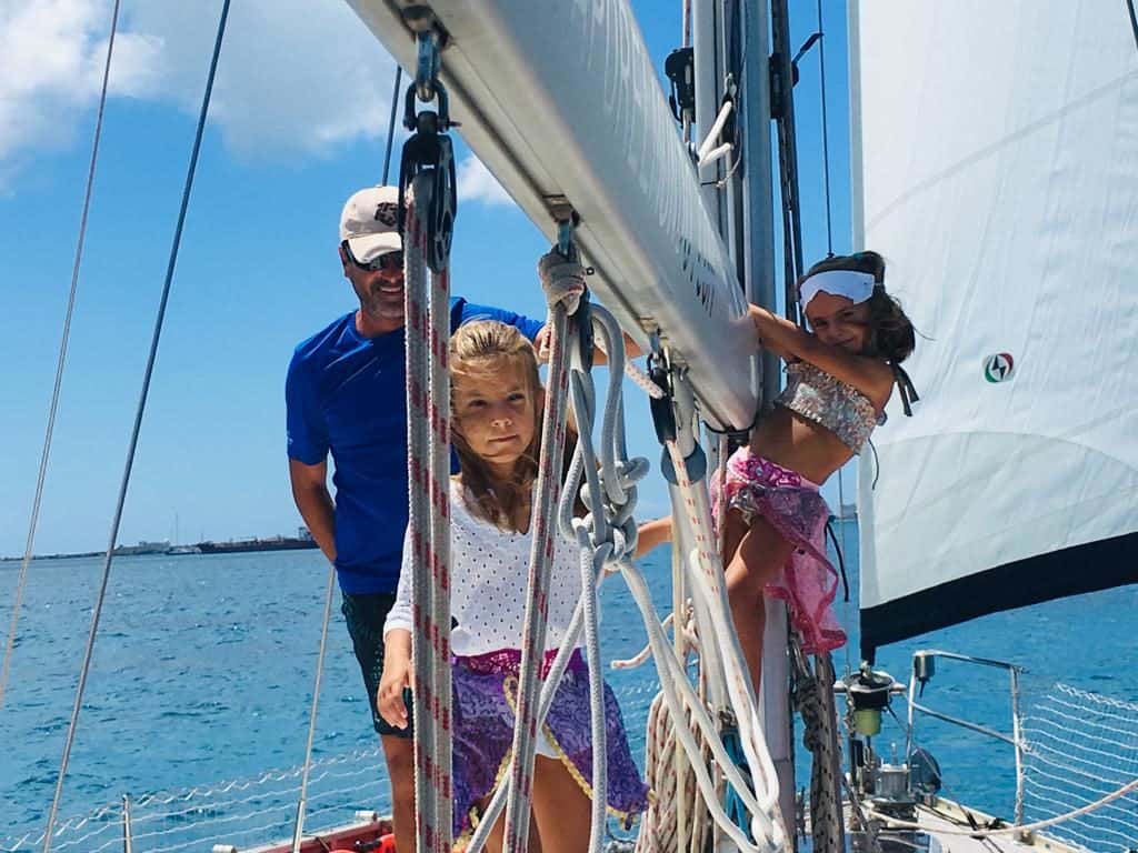 Al día siguiente nos juntamos con la familia del catamarán Zingay, Javier, Pilar, Anne y Eva. Una familia que también ha cruzado el Atlantico navegando con sus hijas y que ya estuvieron navegando por el caribe cuando sus hijas eran pequeñas hace 6 o 7 años.