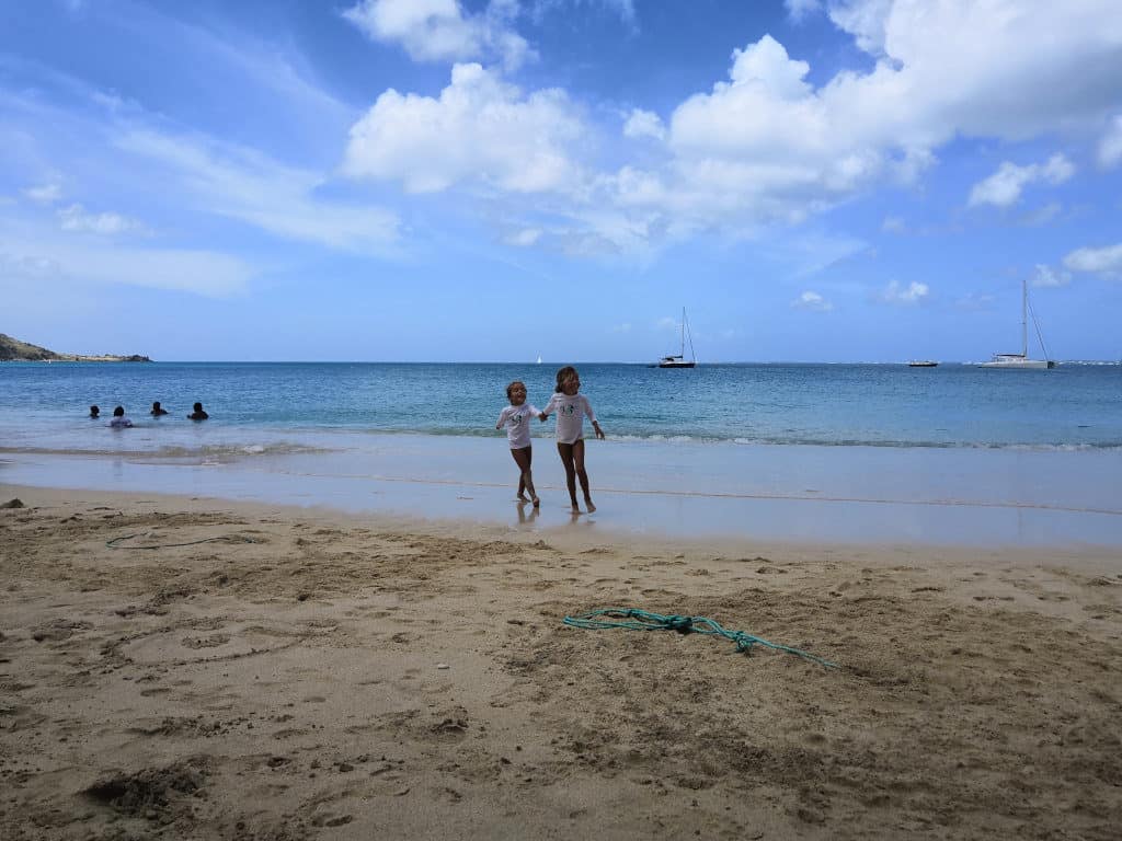 En St Martin pasamos muy buenos momentos. Nos hemos reencontrado con amigos como Alejandro y los amigos brasileños del velero Biguá que no veíamos desde Barbuda. Hemos tenido cena con amigos prácticamente todos los días y lo hemos pasado genial tanto los papis como Sara y Mia. Nos hubiésemos quedado más tiempo pero cada una de las tripulaciones tenia sus objetivos. Jorge y Alejandro partían rumbo a las Islas Virgenes Británicas para embarcar el Acherón y llevarlo de vuelta a Granada. El catamarán Biguá pondría rumbo oeste también hacia las BVI. El catamarán Zingay rumbo a Martinica y nosotros rumbo a Nevis donde íbamos con la intención de escolarizar a Sara y Mia durante unas semanas en la escuela Montessori.