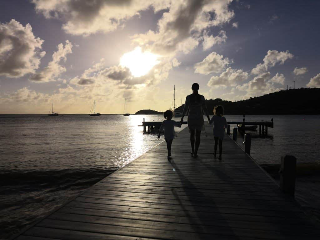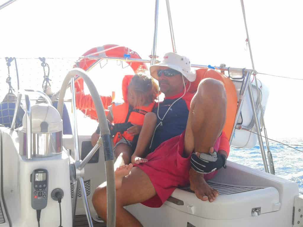 Cuando llegamos en Jolly Harbour nos encontramos con los portugueses del Velero Faraway y les invitamos a tomar unas cervezas en nuestro barco. Al ser el día de San Valentín, ellos se ofrecieron a quedarse con las nenas al día siguiente para que nosotros pudiésemos salir a cenar los dos solos. Al día siguiente dejamos a Sara y a Mia en su barco y Maria y yo pudimos disfrutar de nuestra primera cena romántica de los últimos 2 meses. Sara y Mia se lo pasaron de maravilla en el barco de Miguel y Ana.