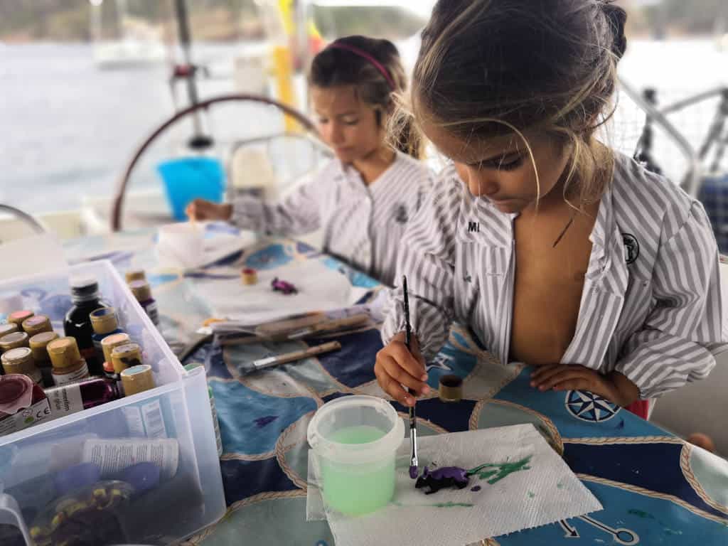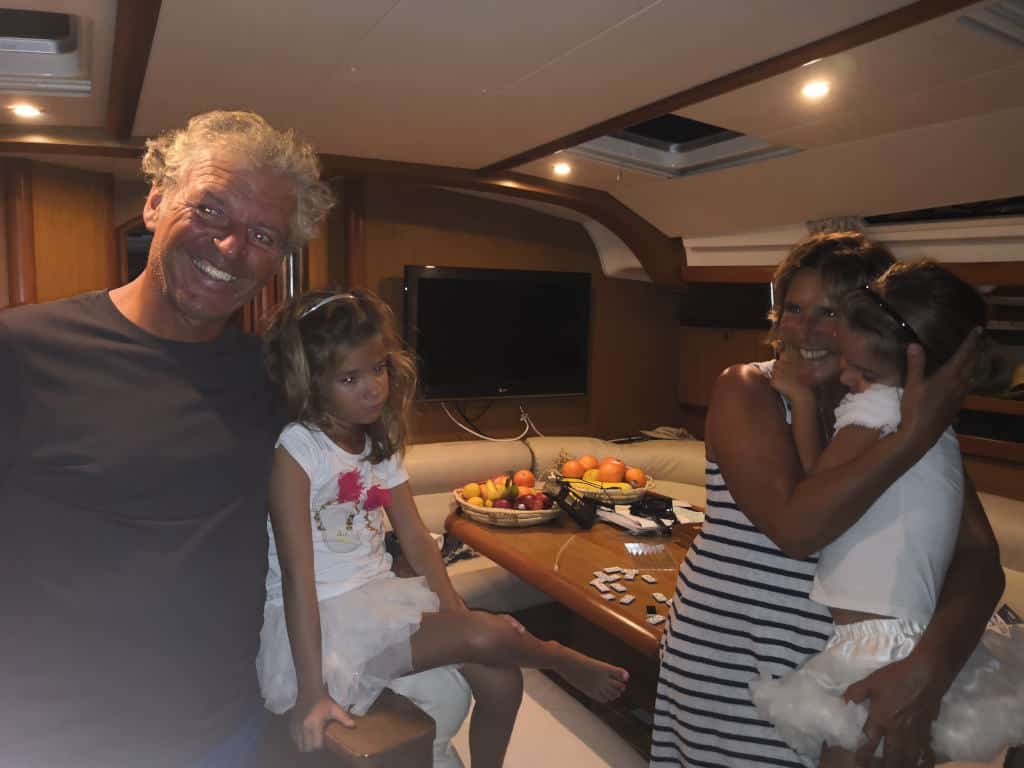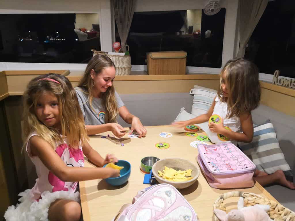 Sara y Mia con Carolina en el velero Biguá.Cena con Faraway en el catamarán Biguá.