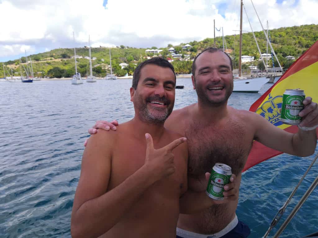 Casualidad al día siguiente cambiamos de fondeo y nos encontramos a Pablo en el fondeo de Nonsuch Bay. Allí nos hicimos unas cervezas y comimos juntos. Pablo ha estado navegando mucho durante varios años todas las islas del caribe y fue él quien nos hizo cambiar de idea y navegar a las granadinas en la temporada de huracanes. Nos dio muchos consejos en la navegación por las islas y como en dos días regresaba a España y tenia que vaciar la nevera también nos lleno nuestra nevera for free. Gracias Pablo!!