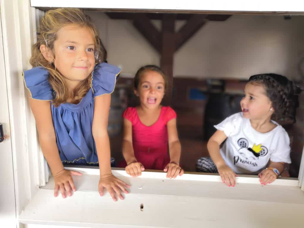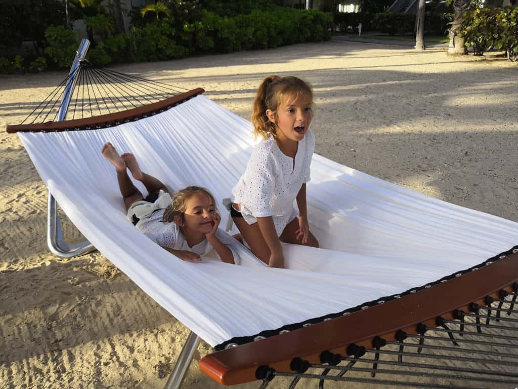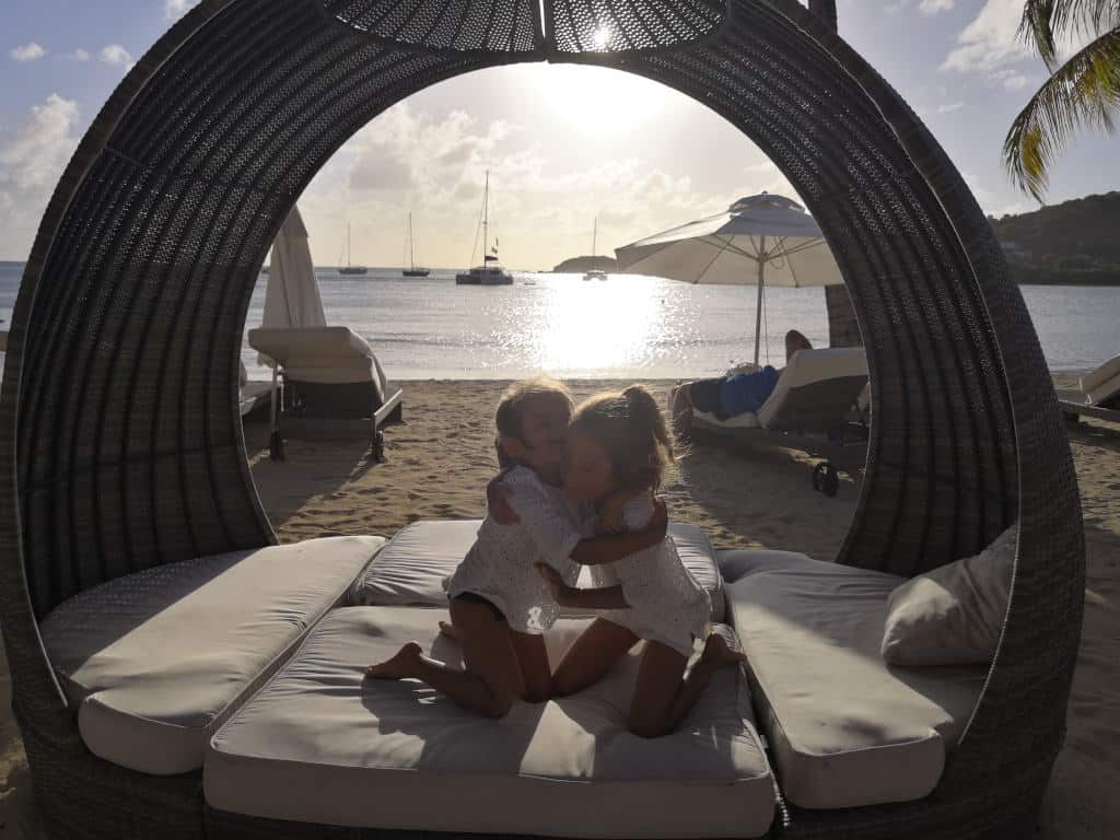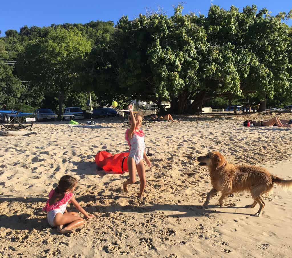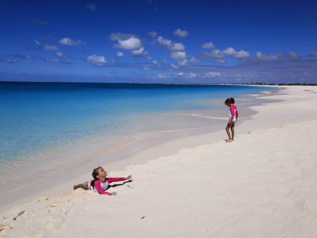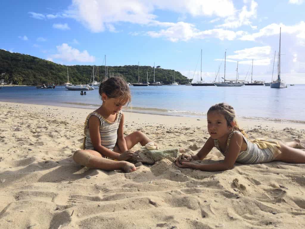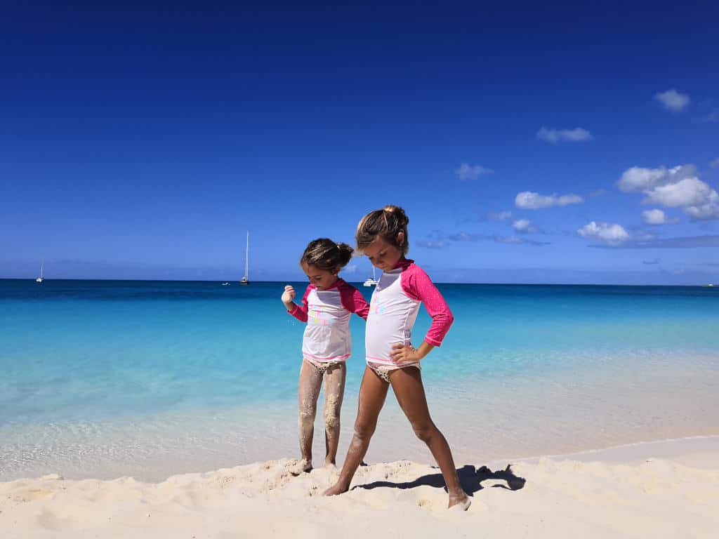Sara y Mia en la playa privada después de que se fuese el catamarán de turistas.