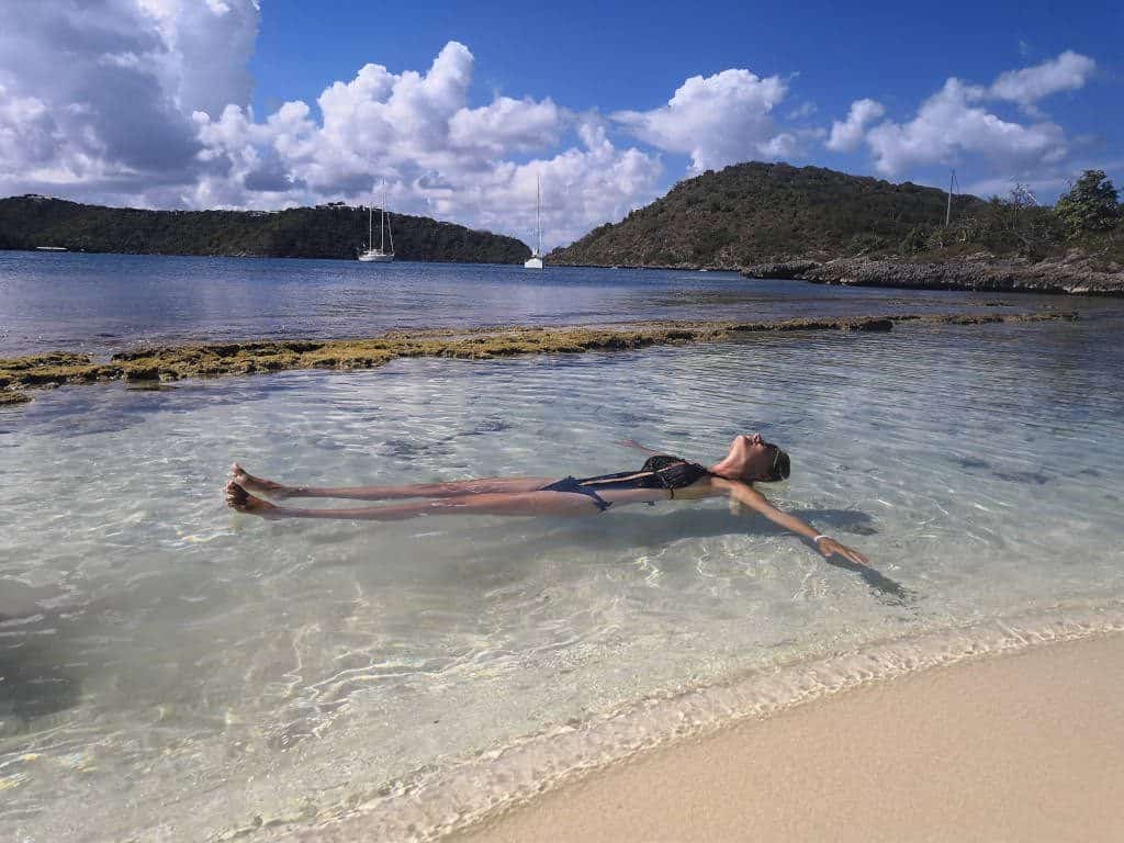 Fondeo en Green Island.Maria en su momento relax en Green Island.