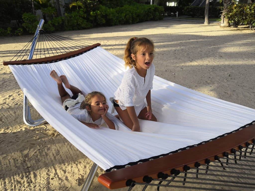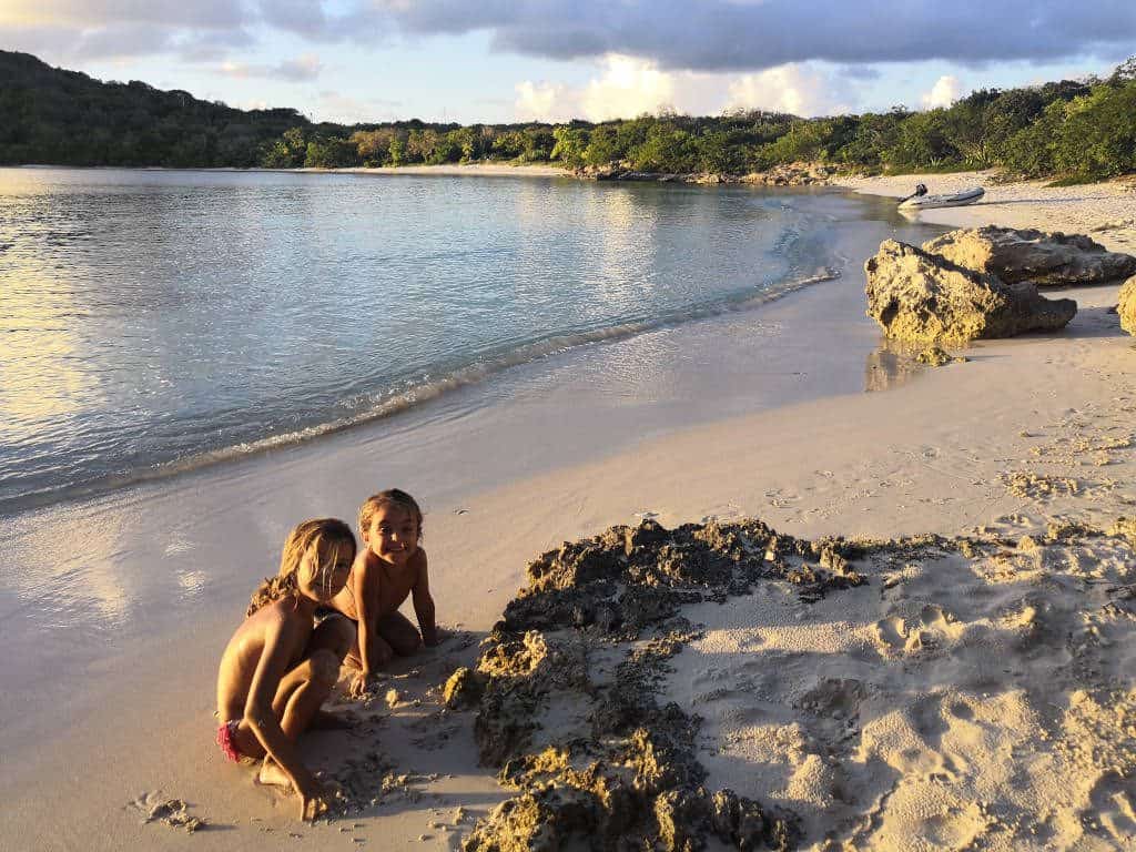 Nuestro fondeo en Falmouth fue una maravilla. A escasos metros teníamos una playa de arena blanca donde podíamos bajar a jugar con las nenas. Y allí encontramos un parque infantil justo al lado de la playa. Desde Fort de France en Martinica que no encontrábamos ningún parque infantil por las calles.