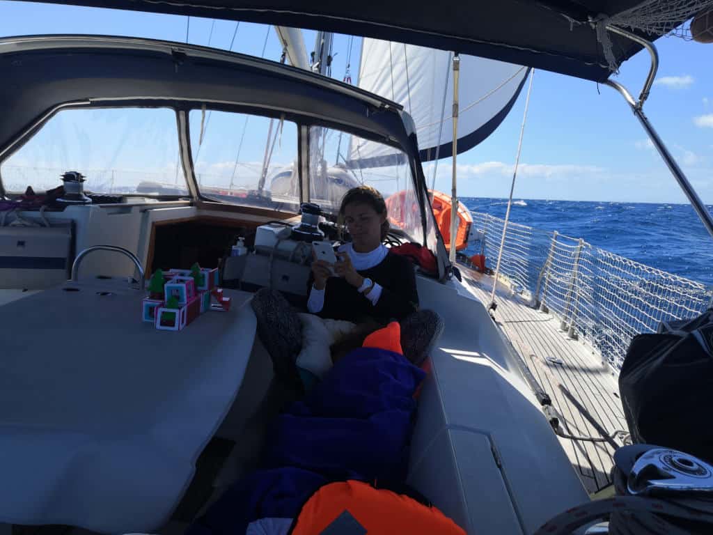 De Antigua a Barbuda es una travesía de tan solo 24 millas, la cual realizamos en 4 horas por la mañana antes de comer. Cuando llegamos allí nos encontramos de nuevo con el barco de los portugueses y con el Catamarán Biguá de unos brasileños que también participaron en la ARC. Esa misma noche nos invitaron a su Catamarán a tomar unas cervezas. El problema de que te inviten a un Catamarán es que nos acabamos enamorando del espacio y la comodidad que es navegar en un multicasco. Es perfecto para navegar con niños ya que la vida la haces en el salón y la terraza. Todo en la misma planta!! Nada de escoras ni movimientos de una lado a otro en el fondeo. Si surgiese la oportunidad cambiaríamos a un Catamarán, no por mi, ya que yo soy de monocasco, por las nenas y por Maria. Para que tuviesen algo lo más parecido a una casa en el mar.
