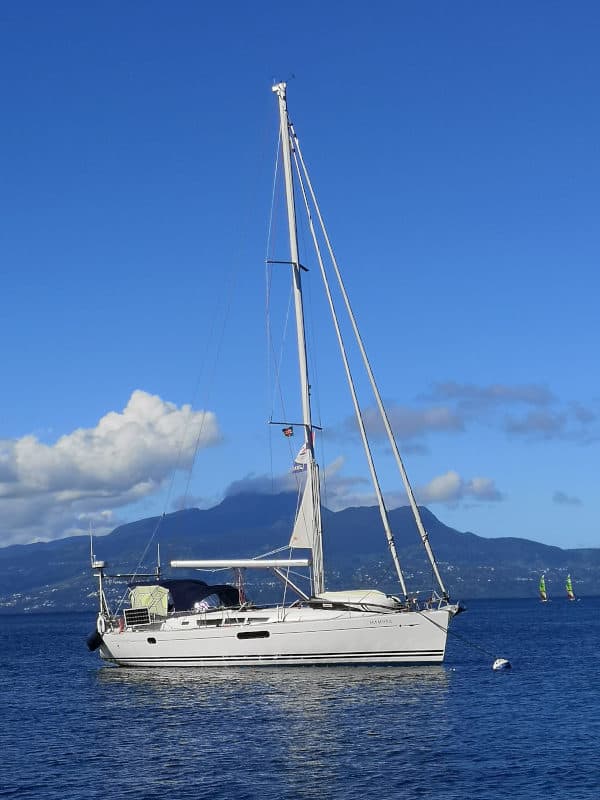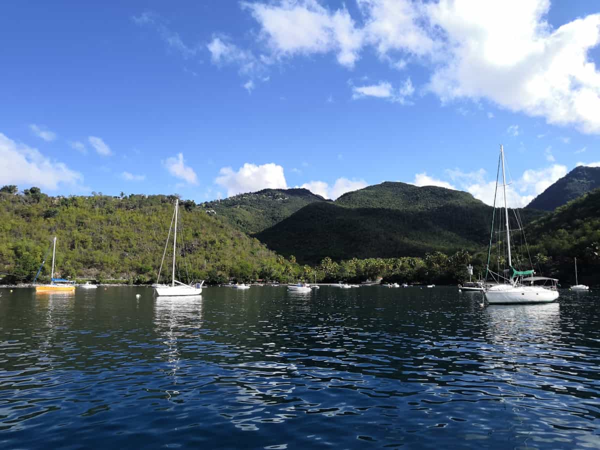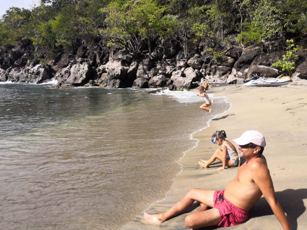Después de darnos la vuelta decidimos echar el ancla en una playa cercana a Deshaies y la verdad es que fue todo un acierto. Nos gusto tanto que allí pasamos 4 noches. La playa no estaba nada masificada y el fondeo era magnifico. Tuvimos 2 noches con vientos constantes de 25 nudos y se notaba como el barco tiraba de la cadena del ancla. Pero estábamos totalmente tranquilos ya que esas dos noches estábamos solos en el fondeo. Por otro lado, el ancla y la cadena de 12 mm del Sarámia nos dan mucha tranquilidad.