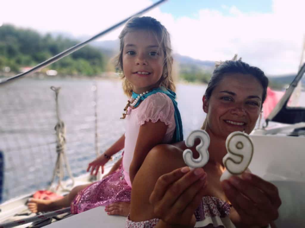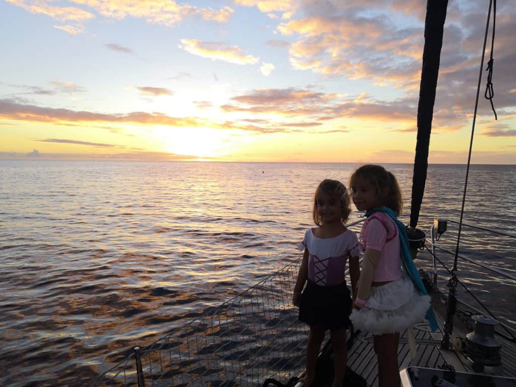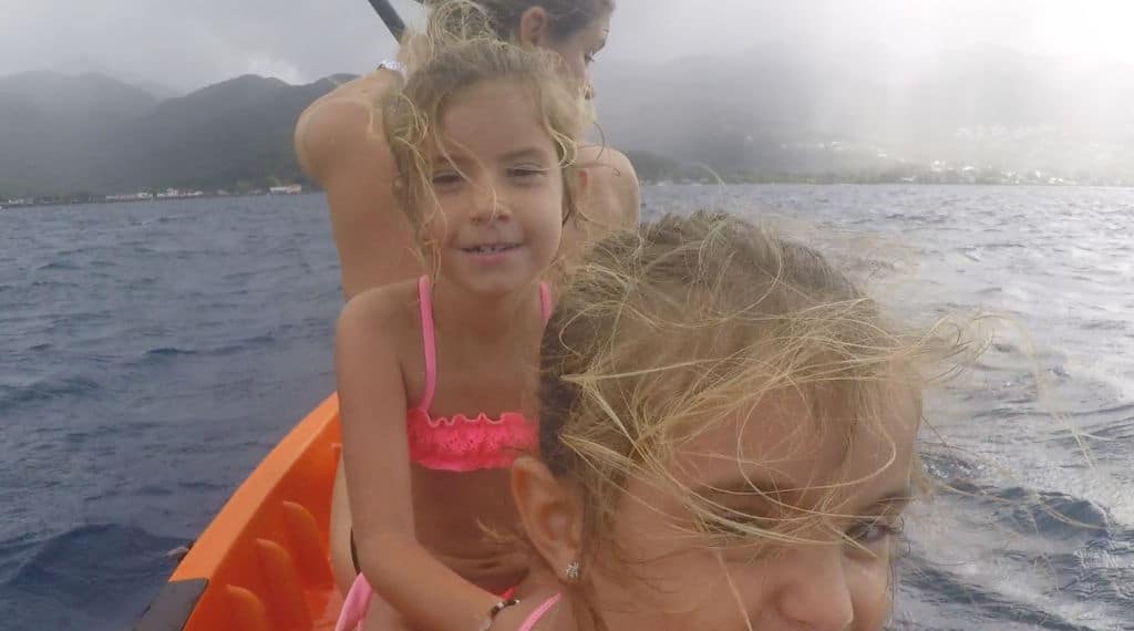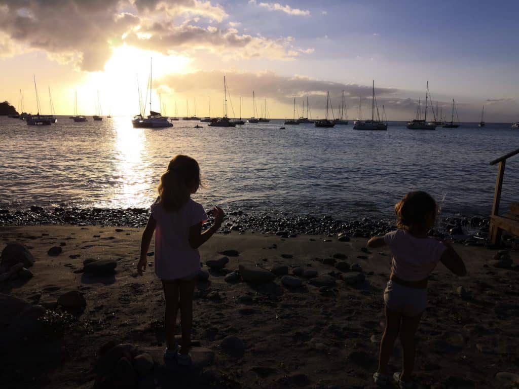 La tercera noche echó el ancla a nuestro lado el velero Mamosa. El velero Mamosa es uno de los muchos que seguimos en nuestra cuenta de Instagram desde que salimos de Santa Lucia. Al igual que nosotros, ellos también participaron en la ARC y tienen una hija de 4 años que se llama Sana. Durante el día estuvimos juntos en la playa y por la tarde los invitamos a nuestro barco a tomar unas cervezas. Sara y Mia estuvieron todo el rato jugando con Sana. Hicimos palomitas y las nenas vieron una película! Se agradecen mucho estos momentos charlando con otros navegantes que vamos encontrando por el camino.
