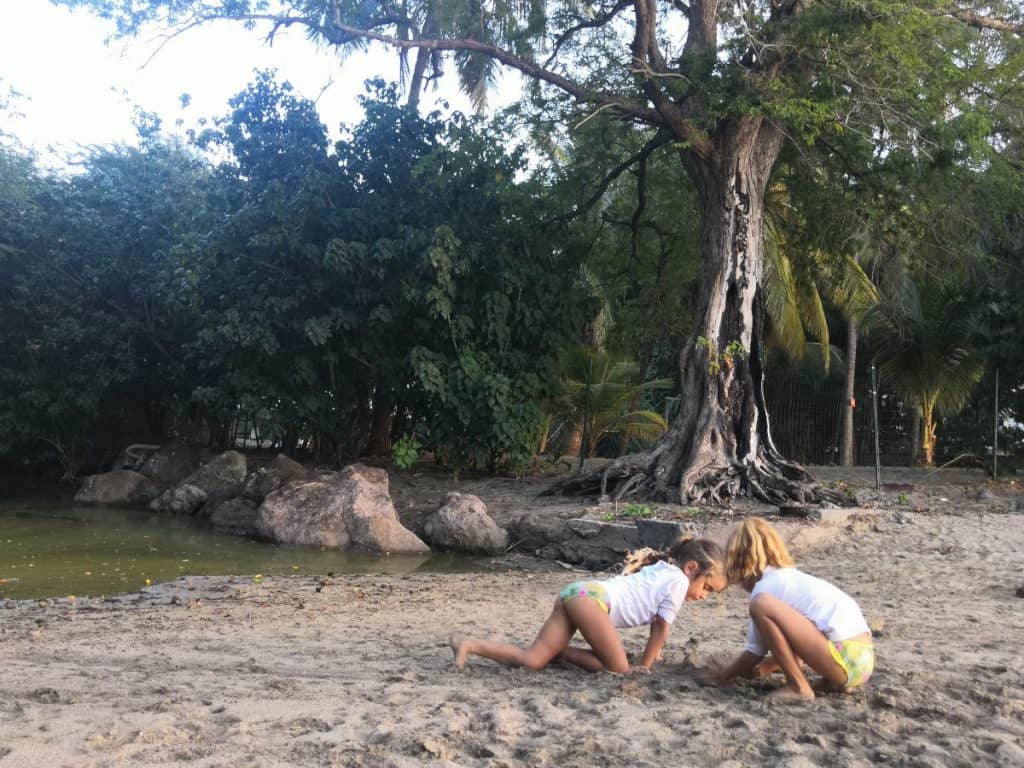 Ese día también bajamos al pueblo de Deshaies y Sara y Mia estuvieron jugando con unas niñas francesas que acababan de salir del colegio.