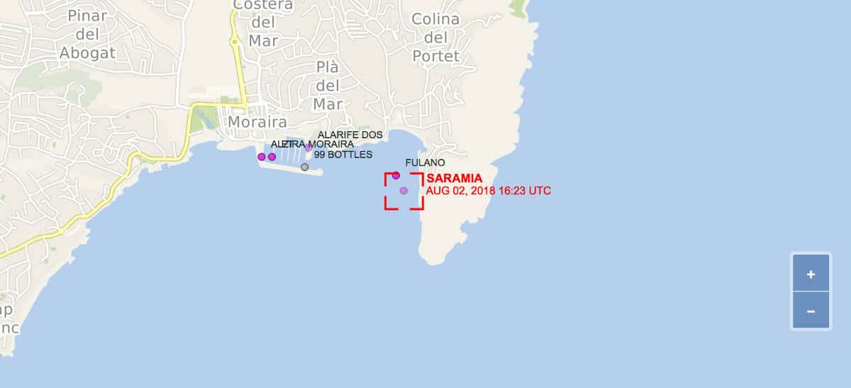 También puedes seguirnos cuando estamos navegando. Nuestro velero dispone de sistema AIS. El AIS no es obligatorio para los veleros pero si recomendable para la navegación. Una vez en navegación nosotros podemos ver en nuestro plotter los demás barcos de la zona y los demás barcos nos pueden ver en su plotter. Al mismo tiempo, las radios costeras detectan nuestro barco y en varias webs se puede realizar el seguimiento. Por ejemplo en la web de Marine Traffic, o en la web de Vessel Finder. En ambas paginas existe la posibilidad de ver lo que hemos navegado en las últimas 24h, solo hay que dar al botón: "track on map" o "Show on live map"