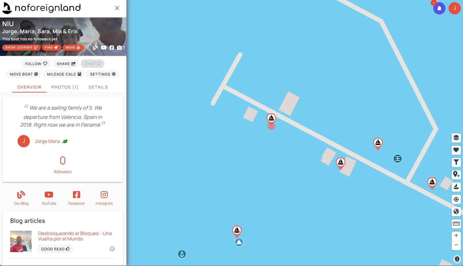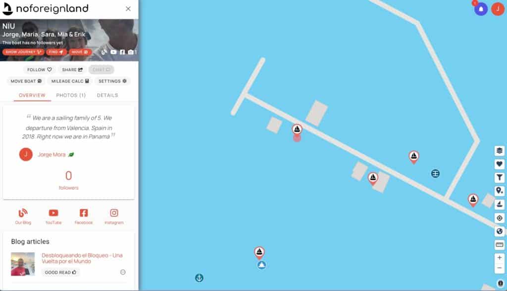 Siempre que llegamos a un nuevo fondeo utilizamos la web de Noforeignland para actualizar nuestra posición. En la pagina de Noforeignland aparece un botón "FOLLOW" donde puedes seguirnos.